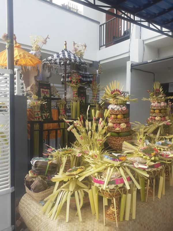 Kelakat Caru, lawar merah, Lawar Putih, sate lembat, sate asem, sate calon, sengkui, ayam berumbum, sambel, Garam, Buah, Jajan, Tumpeng Putih, Tumpeng Merah, Tumpeng Kuning, Tumpeng Hitam, dll