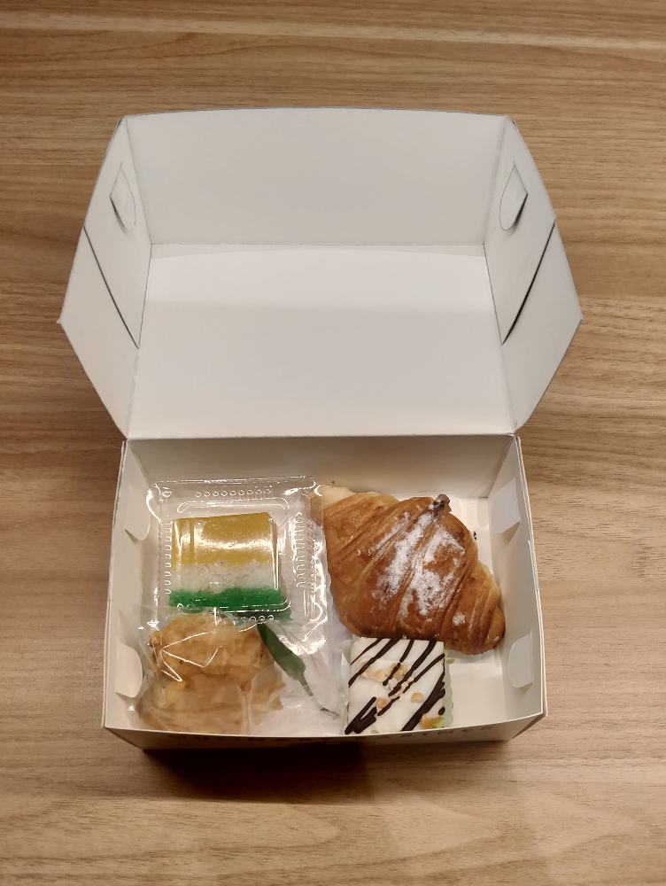 Snack kotak dengan 4 jenis kue tanpa air mineral
